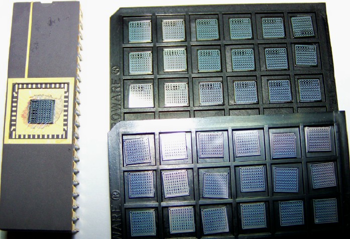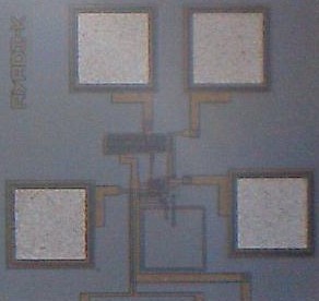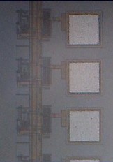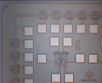 We hold many CMOS photoreceivers of different active areas that are specified to receive the laser light pulses, as seen in this figure with the white spot. These photoreceivers are bounded separately and are used to perform experiments.